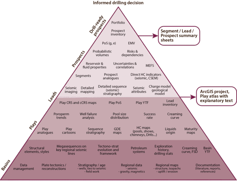 - Prospect Risking & Chance of Success (COS): We systematically assess the geological chance of success for each prospect by evaluating the five key elements of the petroleum system—source, reservoir, seal, trap, and timing.